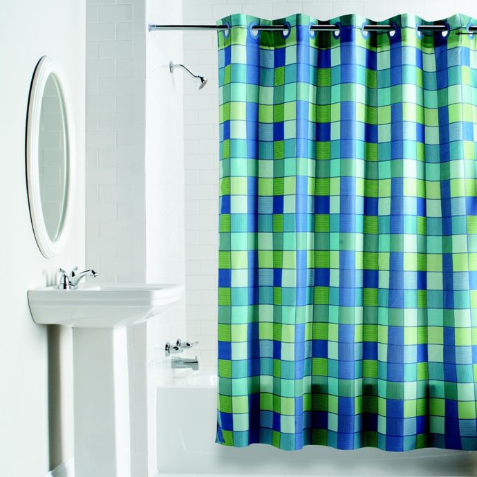 Hookless Checkmate Shower Curtain In Blue Green Bed Bath Beyond