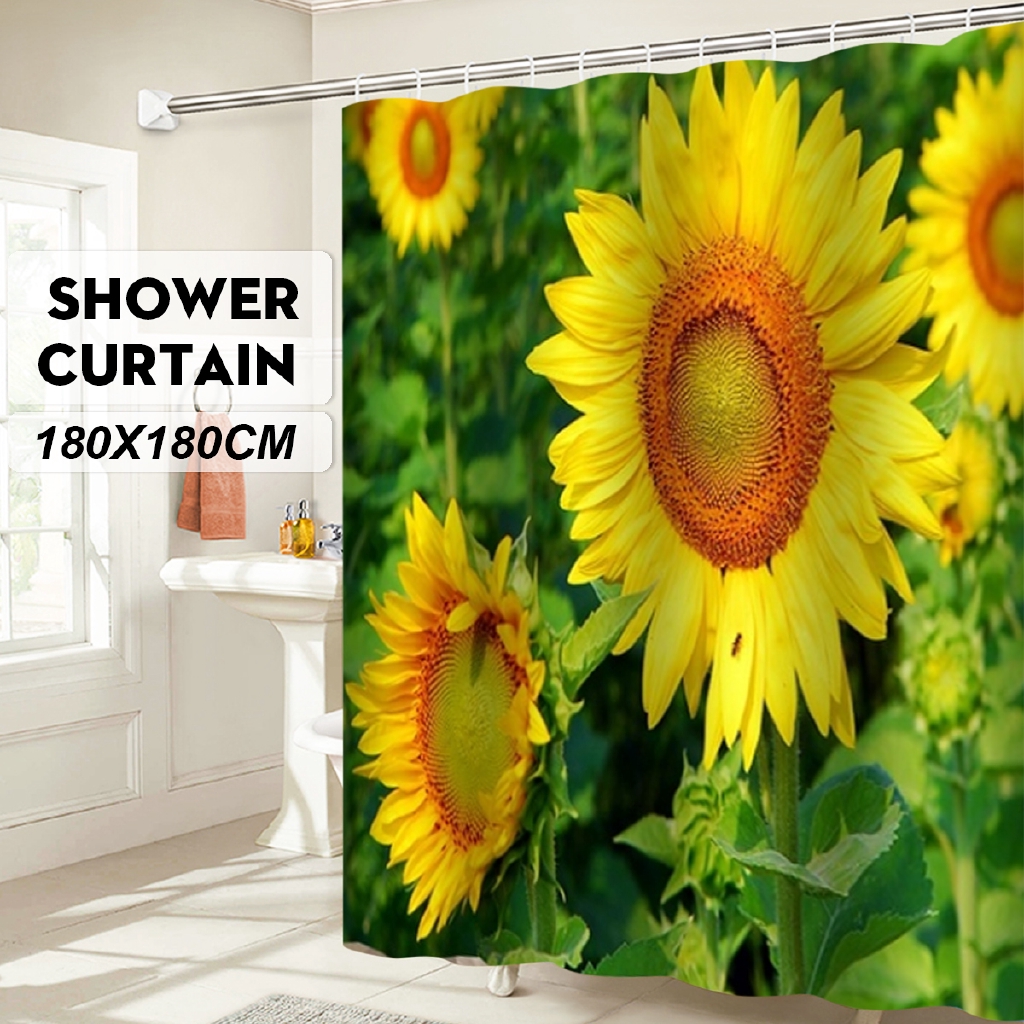 3d Sunflower Green Hue Bathroom Decor Shower Curtain Shopee