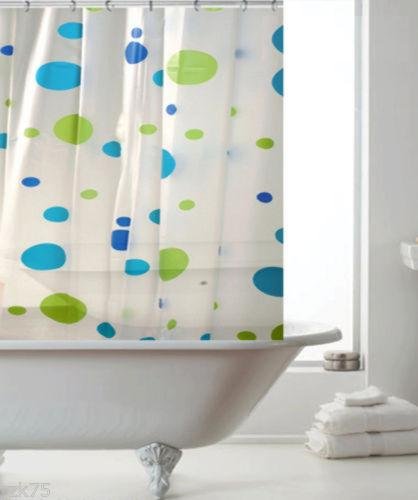 Peva Shower Curtains With Hooks Green Blue Spots White 180 X 180