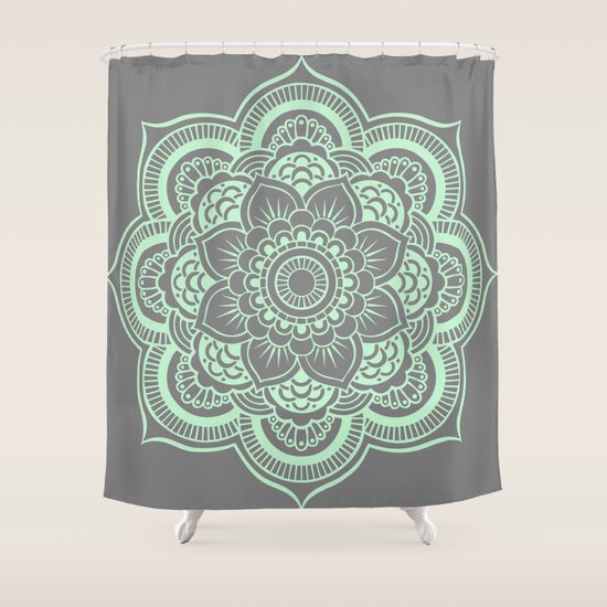 Mandala Flower Gray Mint Shower Curtain By Vintageappeal623