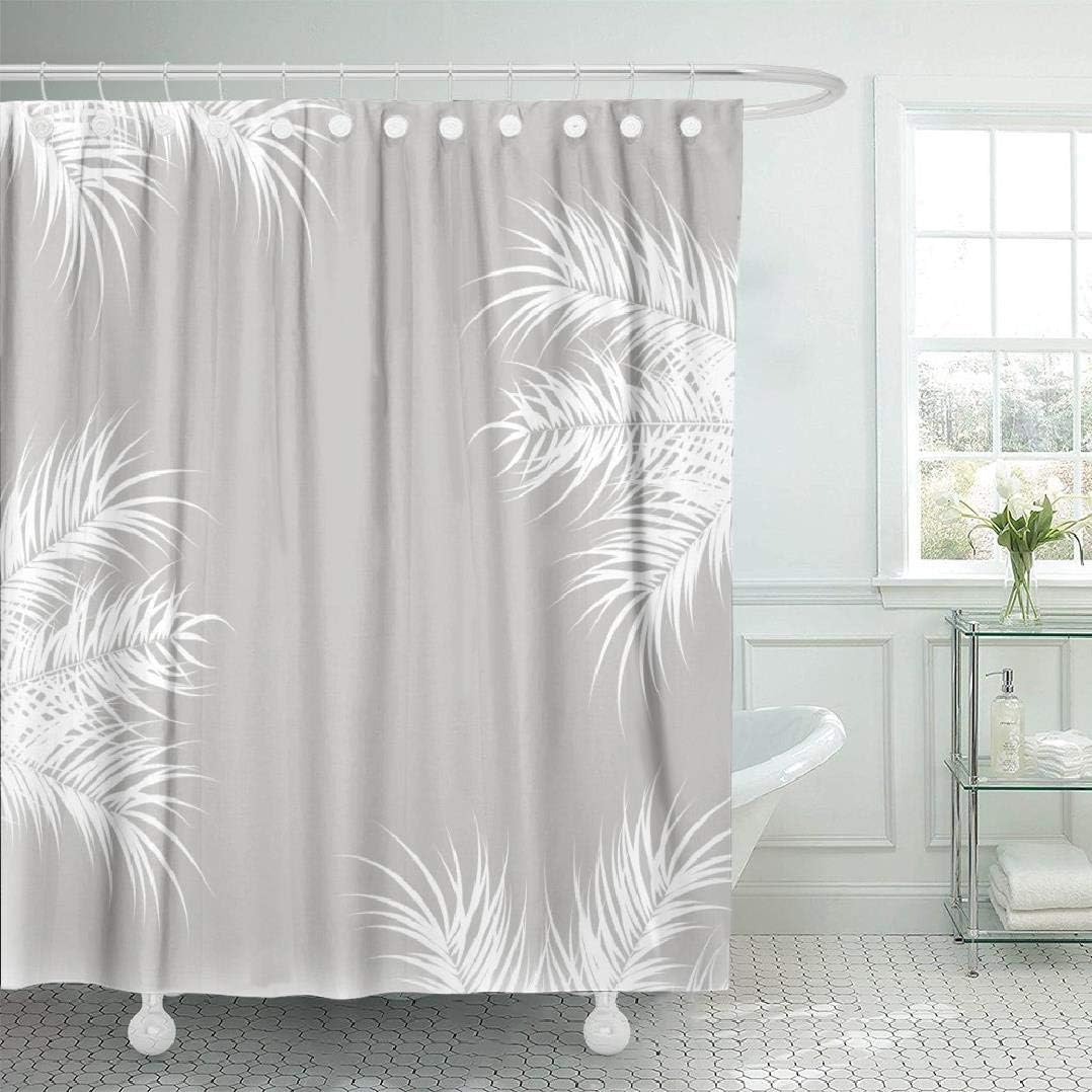 Amazon Com Lilymua Gray Shower Curtain Tropical White Palm Leaves