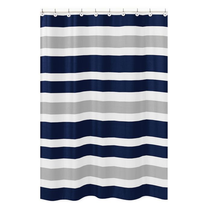 Sweet Jojo Designs Navy And Grey Stripe Shower Curtain Bed Bath