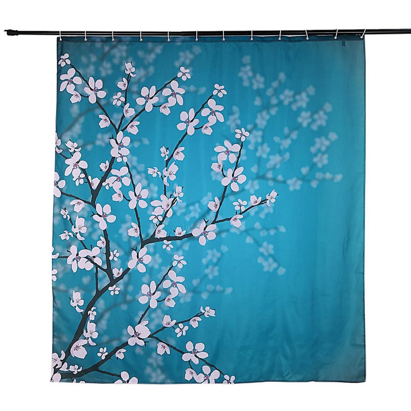 Curtains Hanging Fabric Bathroom Shower Curtain Pink Blossoms
