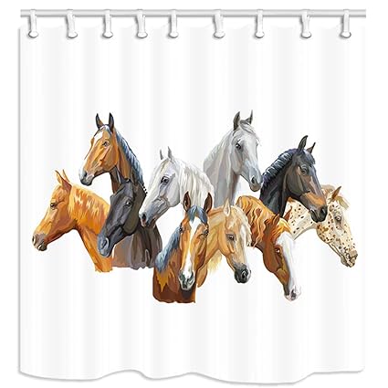 Wonzom Polyester Horse Shower Curtains Bathroom With 12 Hooks