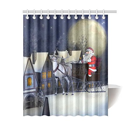 Gckg Christmas Santa Claus Sleight Horse Shower Curtain Blue