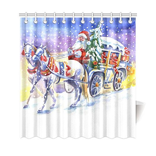Gckg Watercolor Santa Claus In A Carriage With Horse Shower