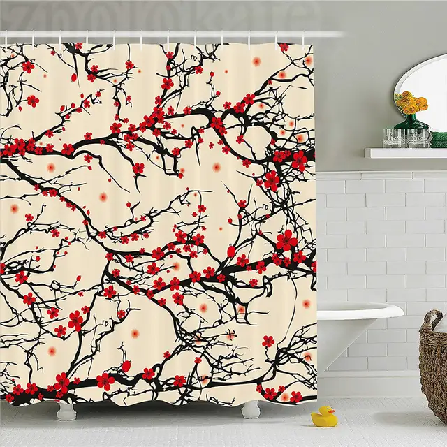 Japanese Shower Curtain Asian Nature Cherry Blossom Sakura Branch