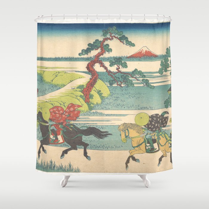 Japanese Print Three Horse Riders Shower Curtain By