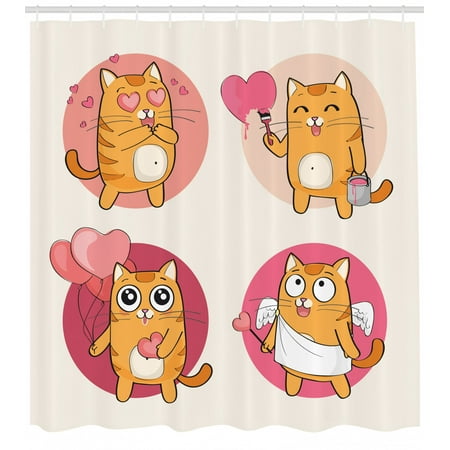 Kitty Shower Curtain Cartoon Cats Illustration Kitten In Love