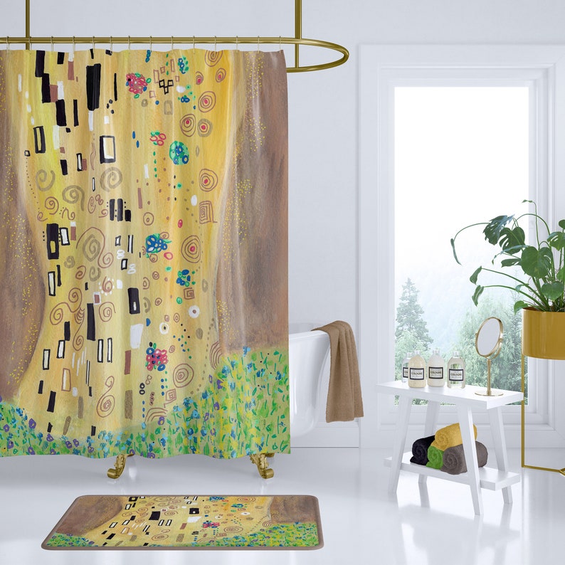 Gold Abstract Shower Curtain Inspired By Gustav Klimt S Etsy
