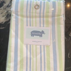 Land Of Nod Fabric Shower Curtain Grommet Top Striped Green Blue