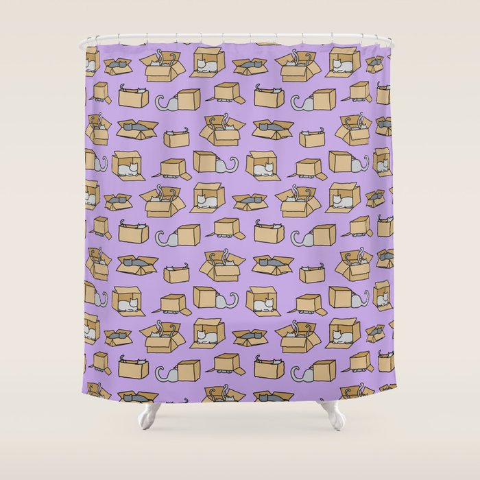 Cats In Cardboard Boxes On Lavender Shower Curtain By