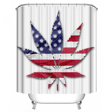 71 71inch Pretty Leaf Printing Shower Curtain Bath Tub Waterproof