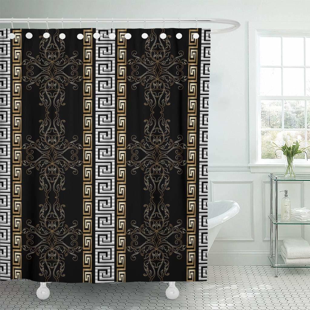 2020 Fabric Shower Curtain Hooks Striped Baroque Antique Black