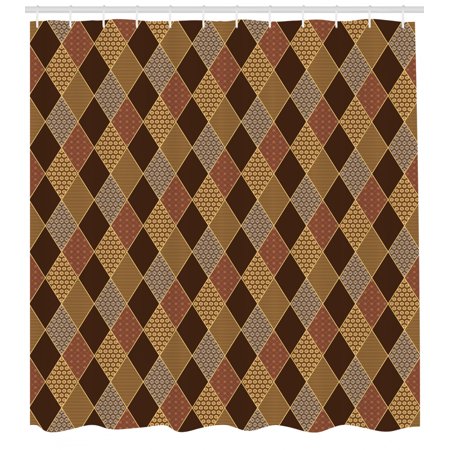 Brown Shower Curtain Lozenge Pattern In Patchwork Style Classical