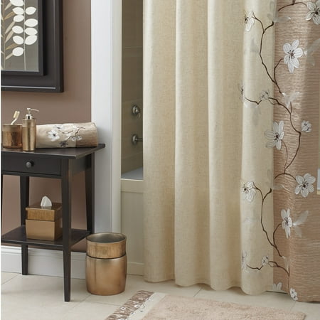 The texture in this neutral look is what elevates this bathroom. Refresh your home sale. Comprised of crushed satin polyester and faux linen a large scale magnolia vine is embroidered where the two fabrics meet enhanced by appliqued fabric blossoms.