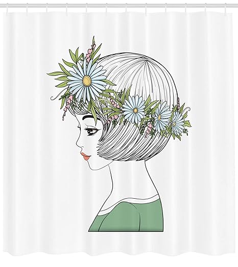 Zkhto Makeup Shower Curtain Cute Girl With Spring Flower Wreath
