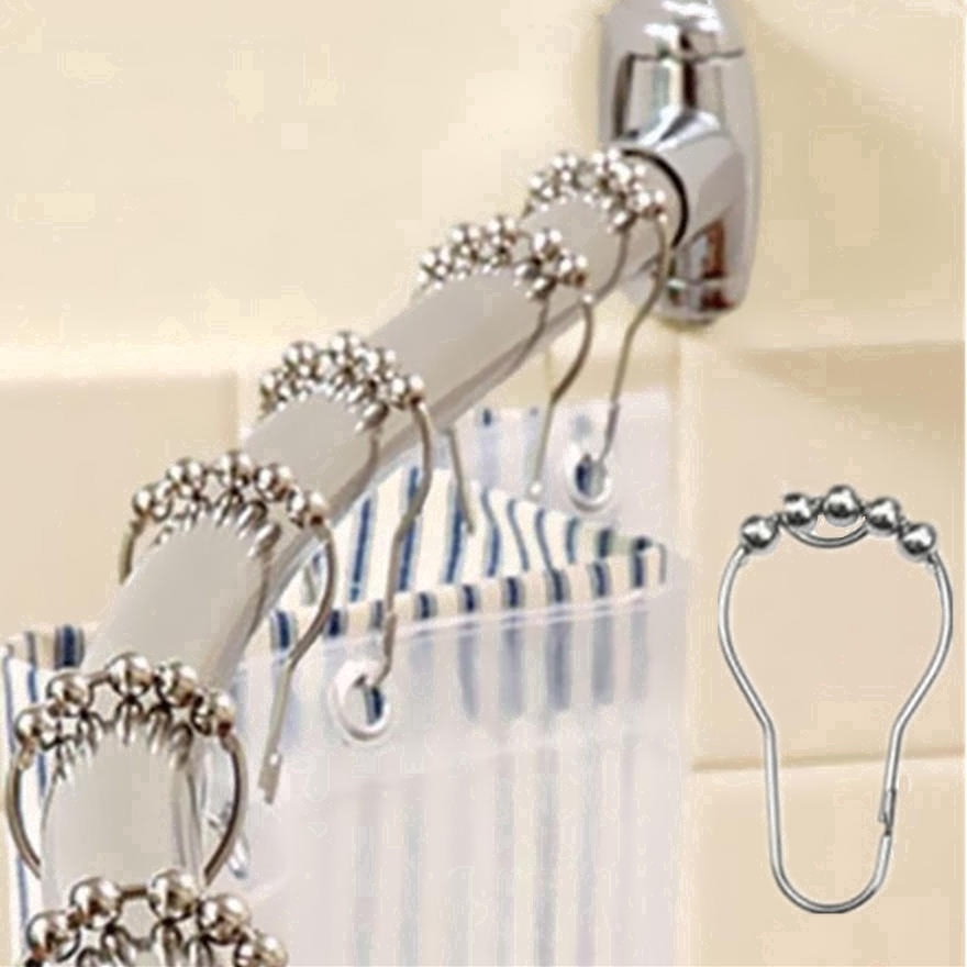 Anladia 24pc Metal Shower Curtain Rings Rail Pole Rod Bathroom