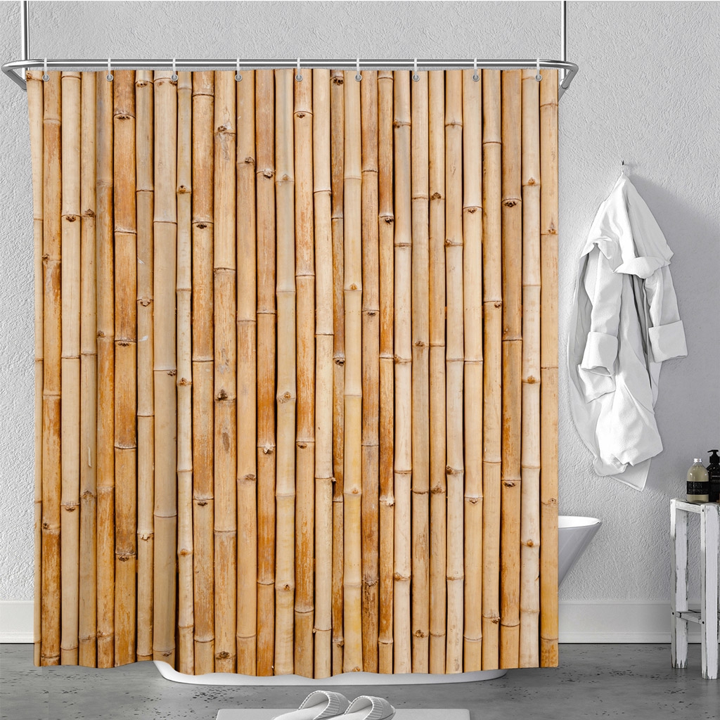 Vintage Bamboo Fence Waterproof Bath Shower Curtain With 12 Hooks