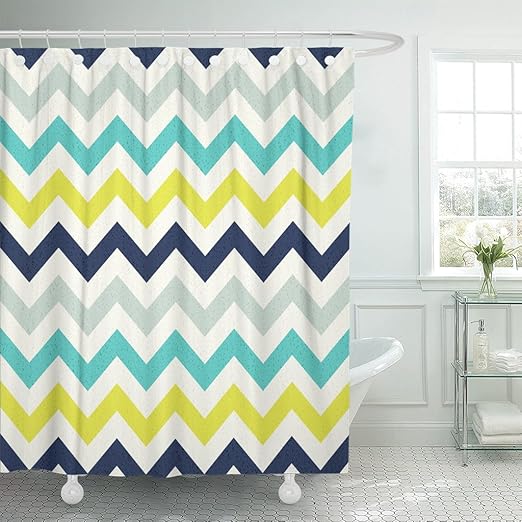 Amazon Com Emvency Shower Curtain Yellow Geometric Chevron