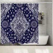 Buy Boho Chic Moroccan Paisley Pattern Navy Blue Fabric Shower