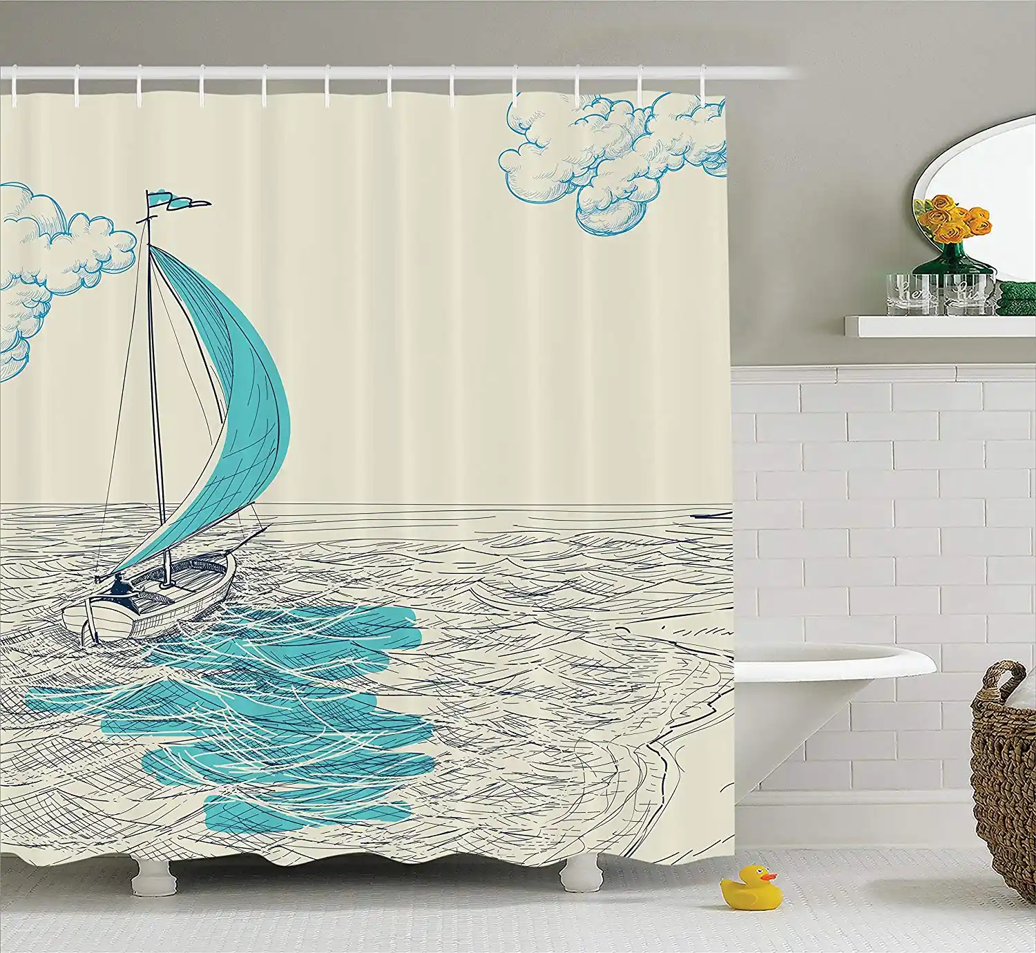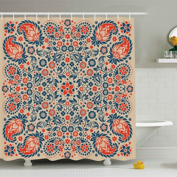 Ambesonne Bath Shower Curtain Flower Arabesque Paisley Print