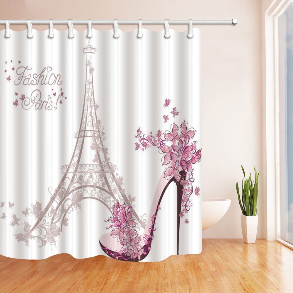 Fashion Paris Eiffel Tower Shower Curtain Bathroom Waterproof