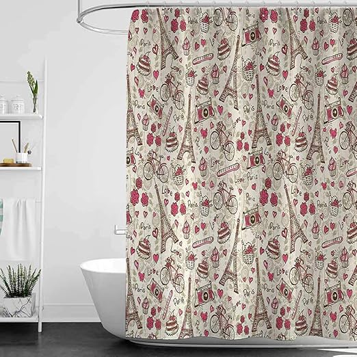 Uphome Paris Fabric Shower Curtain Heavy Duty Cream Eiffel Tower