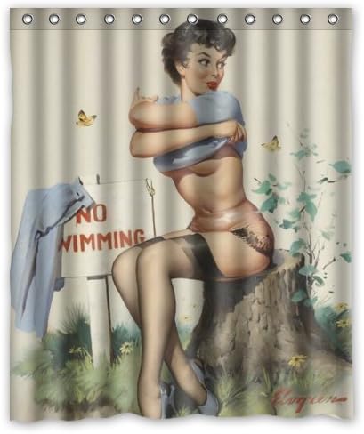 Gckg Pin Up Girl Lady Bathroom Shower Curtain Shower Rings