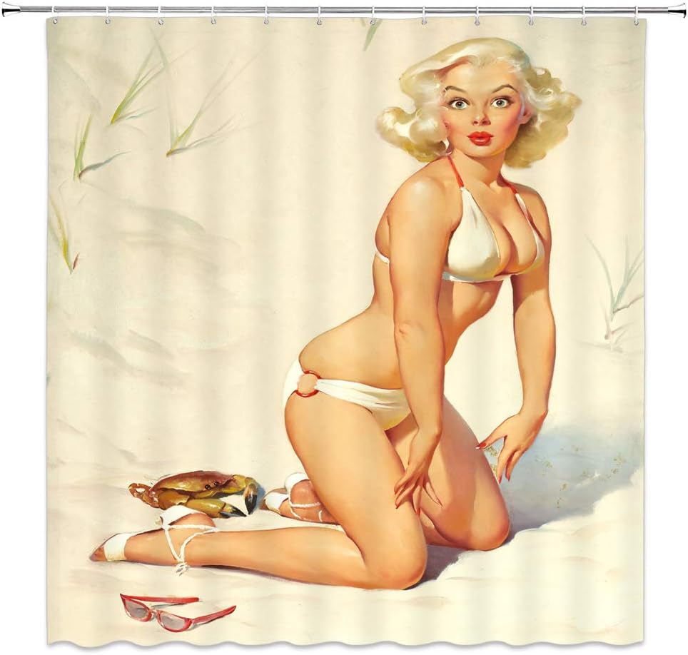 Custom Sexy Sleeping Beauty Pin Up Girl Bath Curtain Bathroom