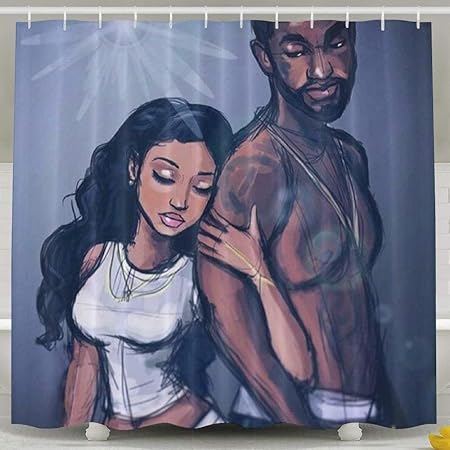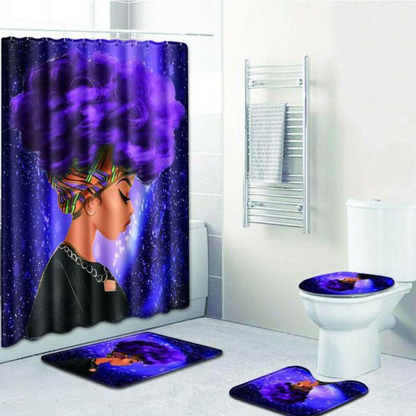 2019 African Women Black Shower Curtain Girl W Purple Hair Afro
