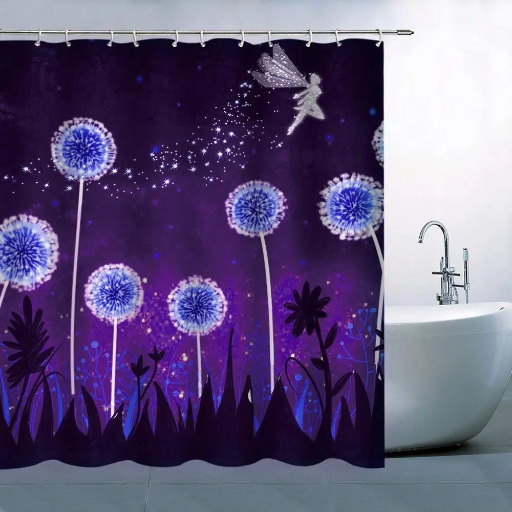 Dandelion Shower Curtain Decor Fairy Flying Over Pale Blue