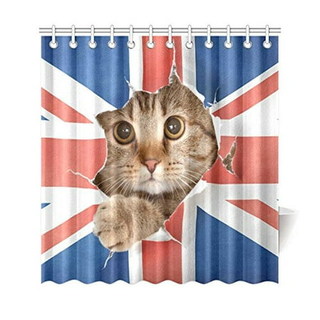 Gckg Uk Union Jack Cat Kitten Polyester Fabric Shower Curtain