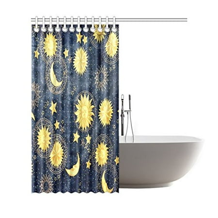 Gckg Vintage Retro Shower Curtain Gold Sun And Moon Polyester