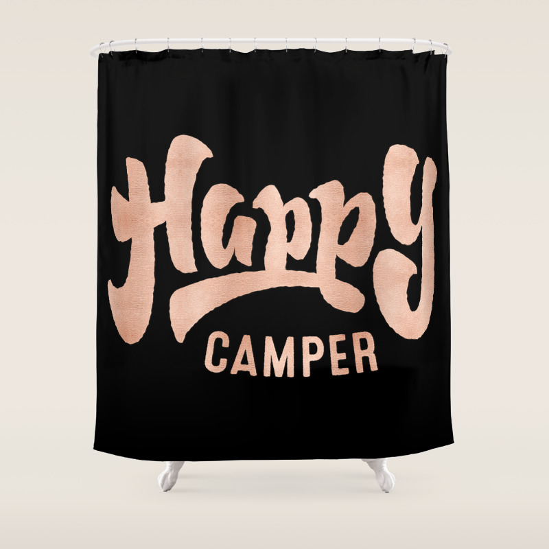 Happy Camper Rose Gold On Black Shower Curtain By Naturemagick