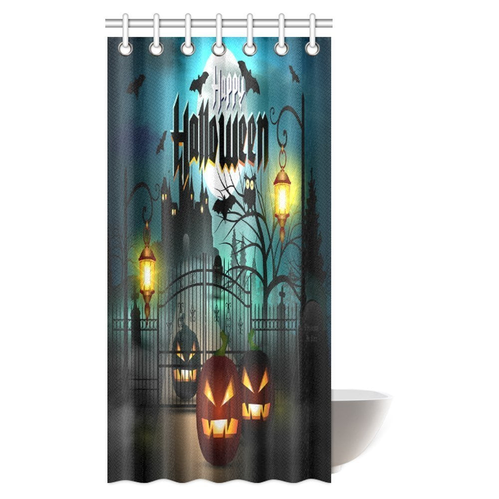 Pop Scary Shower Curtain Happy Halloween Spooky Carved