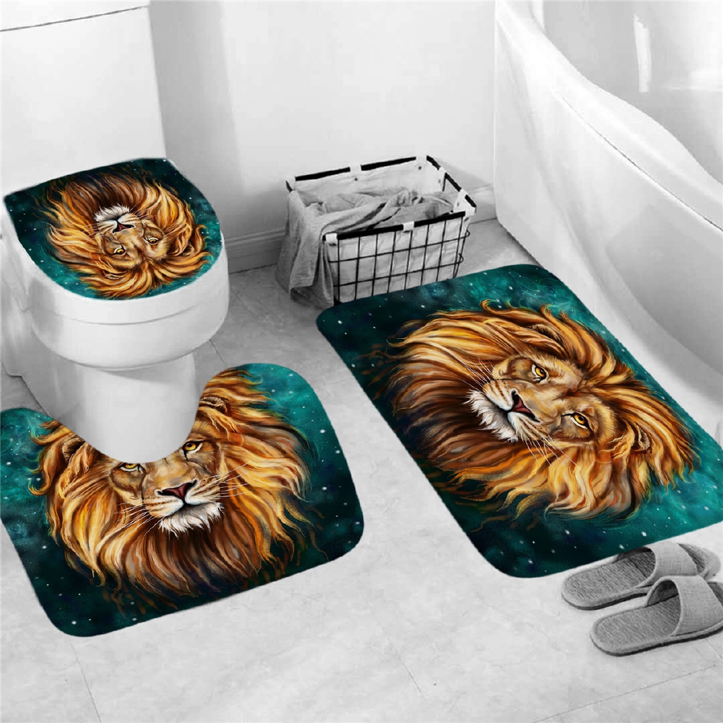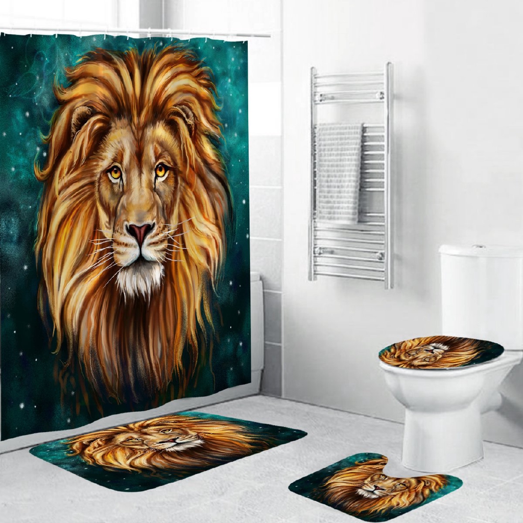 Bathroom Shower Curtain Set Lion Tiger Leopard Animals Prints