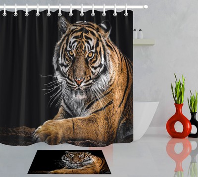 Black Background Tiger Waterproof Fabric Shower Curtain Set