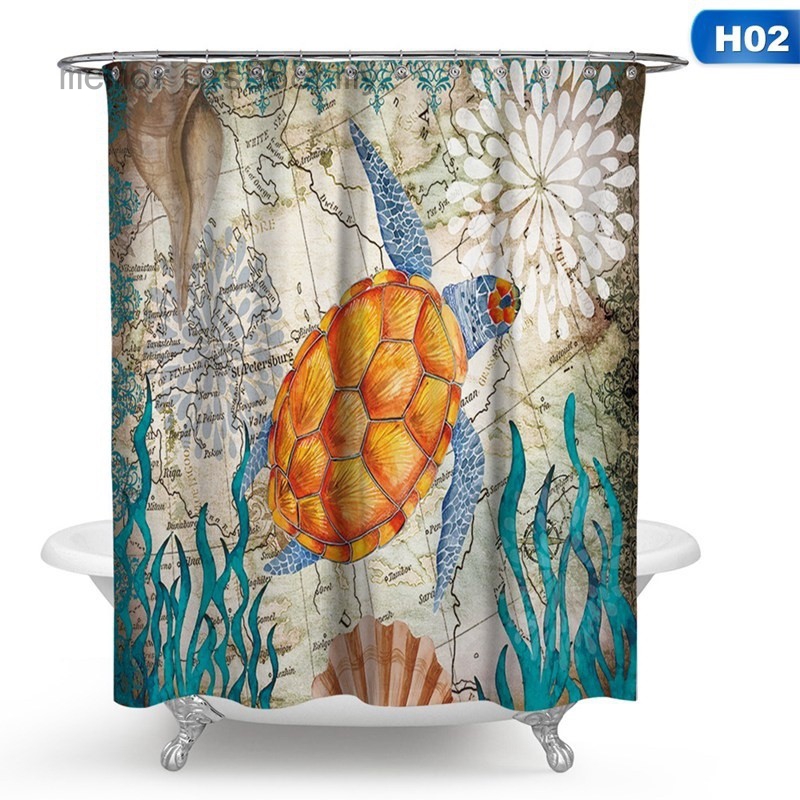 Miracille Turtle Shower Curtain Waterproof Bath Curtains With 12